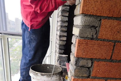 瓦工砌墻啦,采用蜈蚣腳工藝保證安全穩(wěn)妥,裝修先看杰美裝飾